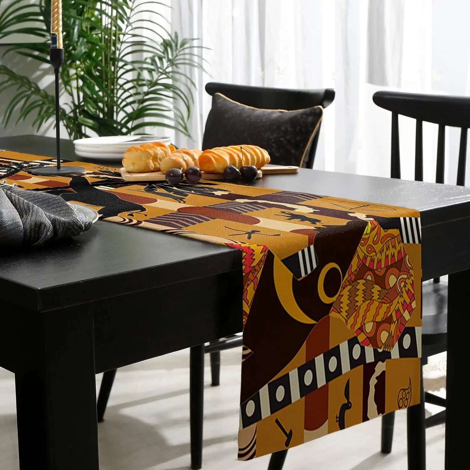 African Black Woman Linen Table Runners Dresser Scarves Decor Elephant Giraffe Kitchen Dining Table Runner Party Decorations