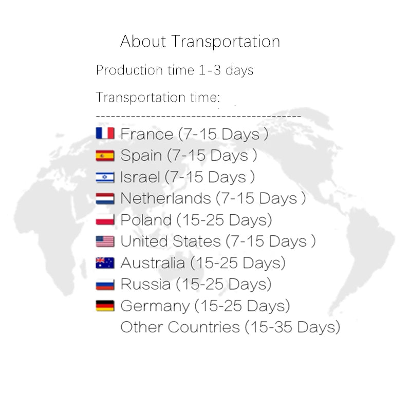 Products Sizes:(1inch = 2.54cm)