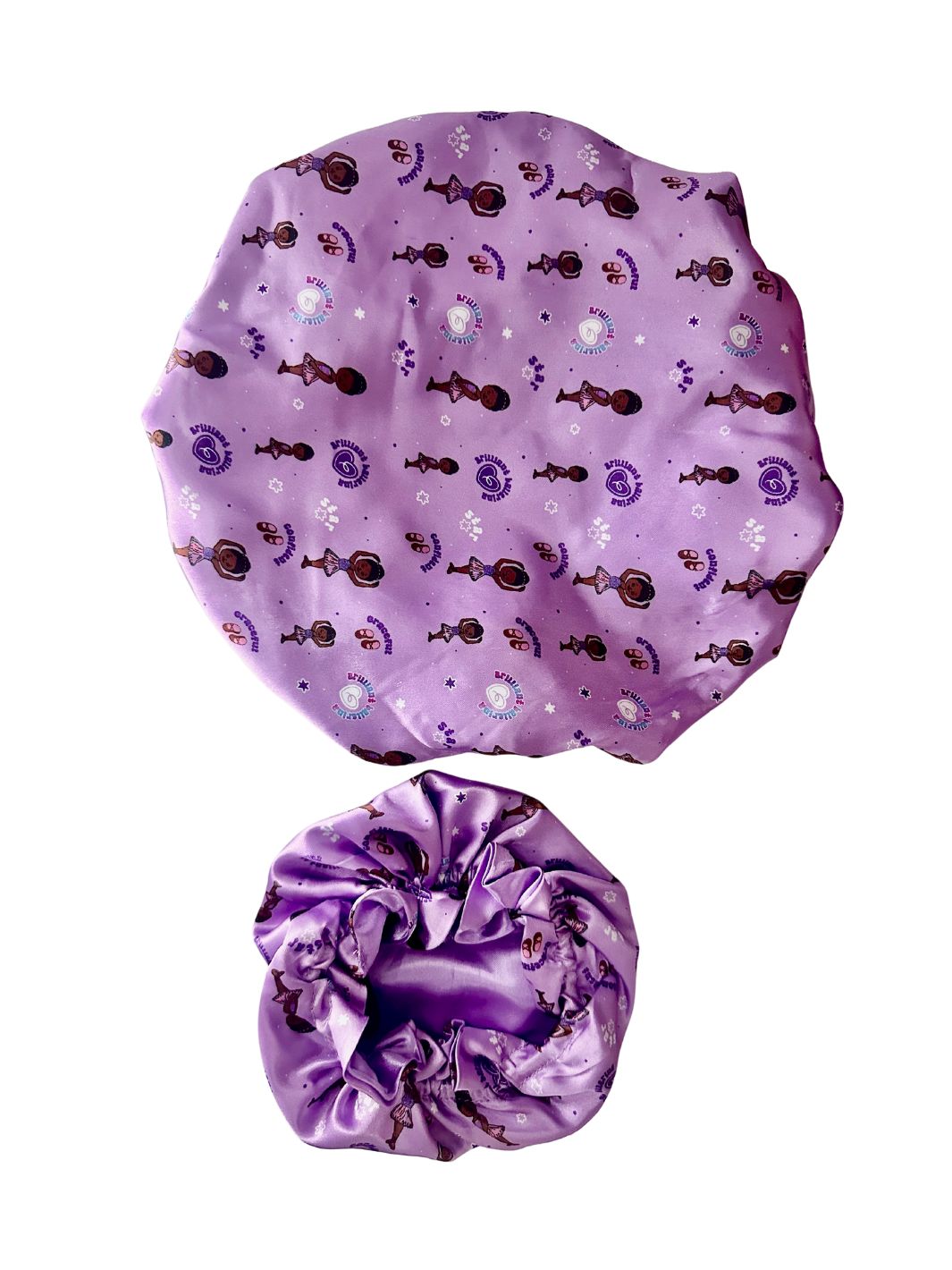 Encourage Healthy Hair Habits with our signature Mini & Me bonnet sets. This Imara Ballerina Bonnet set encourages her to love caring for her curls at night as she will be matching with her doll! Handcrafted with soft satin charmeuse and double lined to keep her hair protected from dryness, breakage and extend the life of her hairstyles.